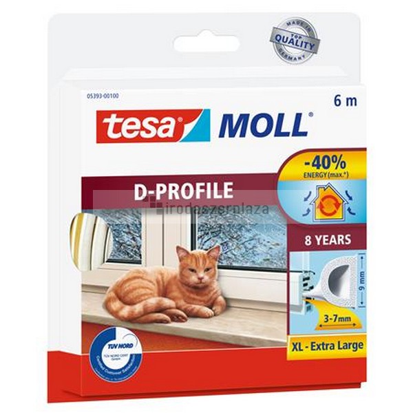 Ajtó- és ablaktömítő szalag, 9 mm x 6 m, TESA „tesamoll® D profil”, fehér
