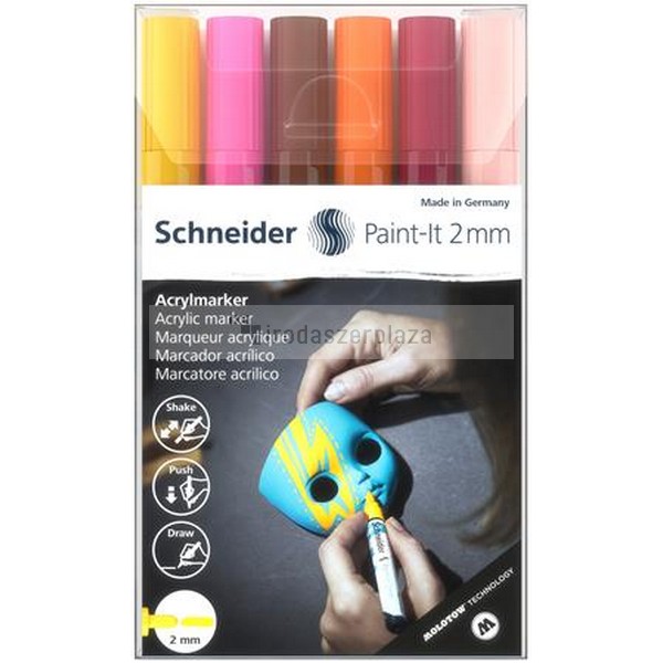 Akril marker készlet, 2 mm, SCHNEIDER "Paint-It 310", 6 különböző szín
