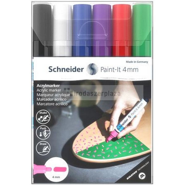 Akril marker készlet, 4 mm, SCHNEIDER „Paint-It 320”, 6 különböző szín
