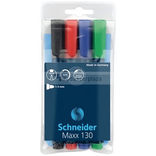 Alkoholos marker készlet, 1-3 mm, kúpos, SCHNEIDER "Maxx 130", 4 különböző szín