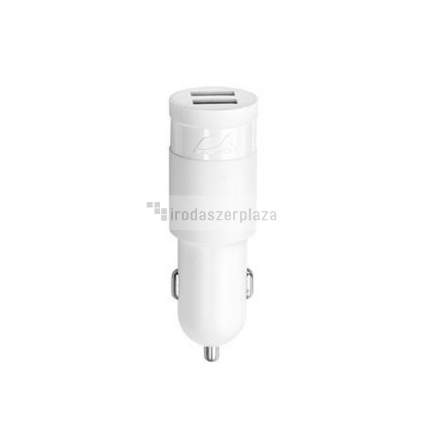 Autós töltő, 2xUSB, 2,4A, RIVACASE „PS4222”, fehér