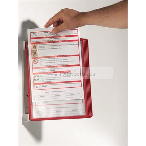 Bemutatótábla tartó, fali, 5 db bemutatótáblával, DURABLE „VARIO® WALL 5”, piros