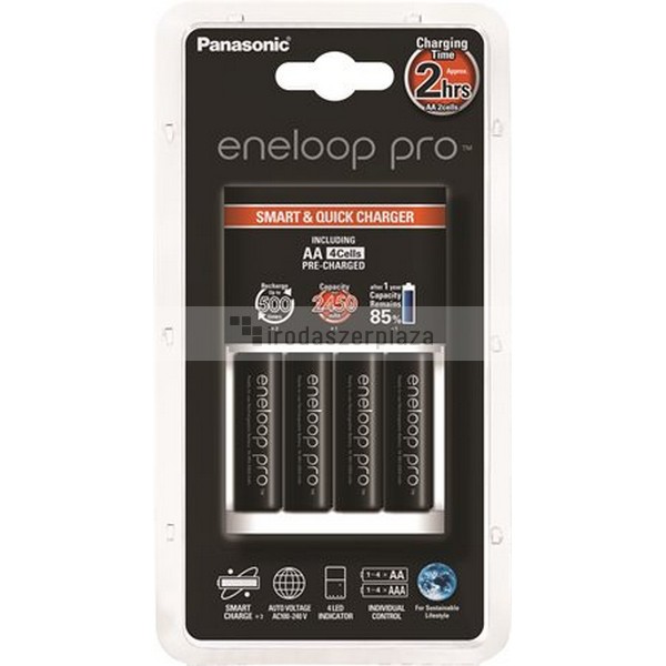 Elemtöltő, AA ceruza, 4×2500 mAh AA, gyorstöltő, PANASONIC „Eneloop PRO”