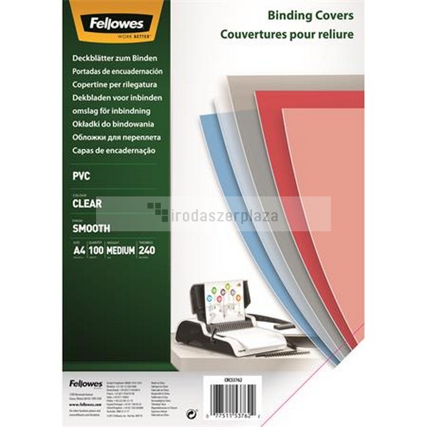 Előlap, A4, 240 mikron, FELLOWES, víztiszta