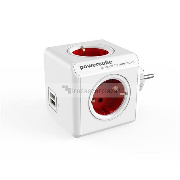 Elosztó, 4 aljzat, 2 USB csatlakozó, ALLOCACOC „PowerCube Original USB DE”, fehér-piros