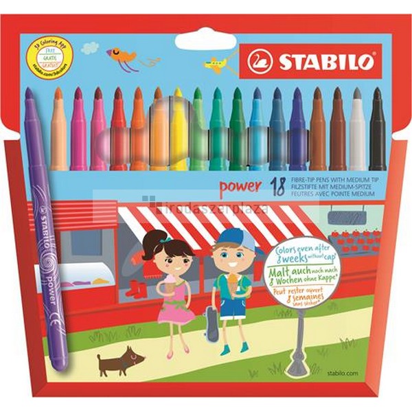 Filctoll készlet, 2 mm, STABILO „Power”, 18 különböző szín