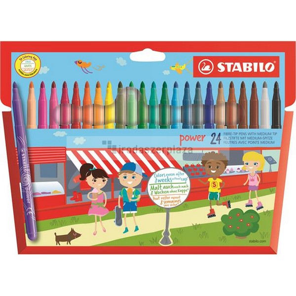 Filctoll készlet, 2 mm, STABILO „Power”, 24 különböző szín