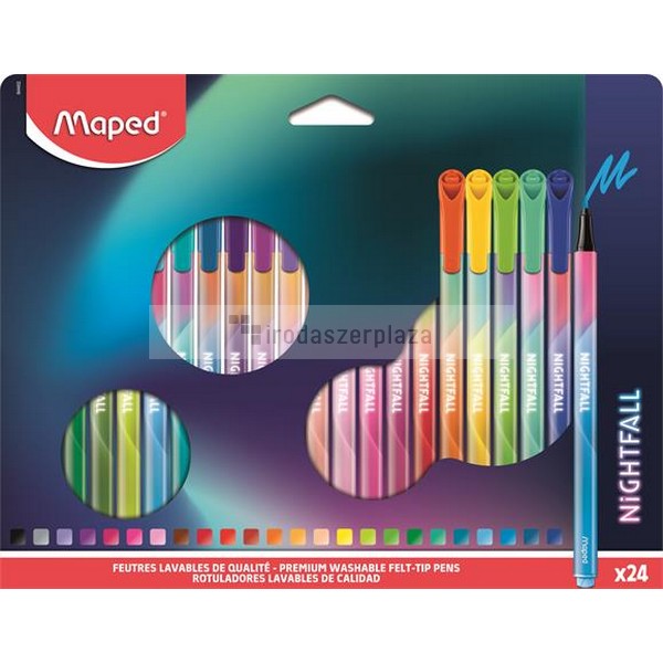 Filctoll készlet, 2,5 mm, kimosható, MAPED „Nightfall”, 24 különböző szín