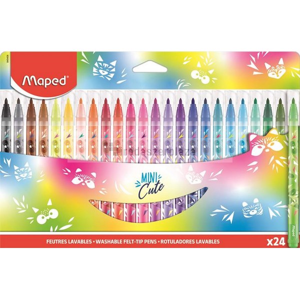 Filctoll készlet, 2,8 mm, kimosható, MAPED „Mini Cute”, 24 különböző szín