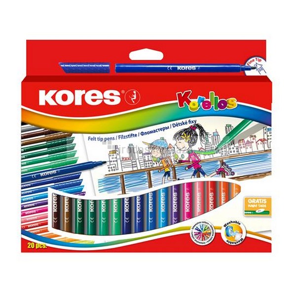 Filctoll készlet, kimosható, KORES "Korellos", 24 különböző szín