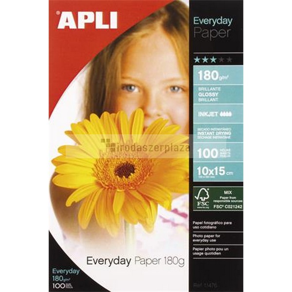 Fotópapír, tintasugaras, 10x15 cm, 180 g, fényes, APLI "Everyday"