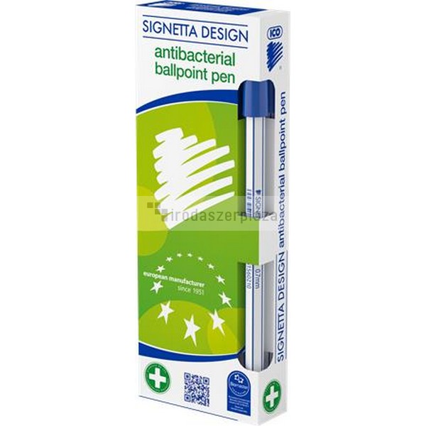 Golyóstoll 0,7 mm, kupakos, antibakteriális, ICO "Signetta", kék