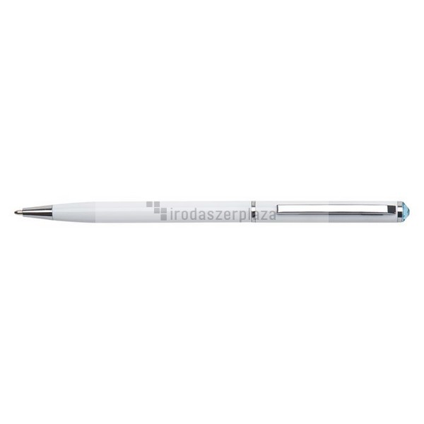Golyóstoll, fehér "SLIM", aquakék SWAROVSKI® kristállyal, 13 cm, ART CRYSTELLA®
