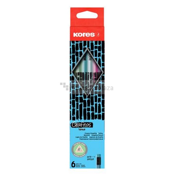 Grafitceruza radírral, HB, háromszögletű, KORES „Style Cracked”, vegyes metál színek