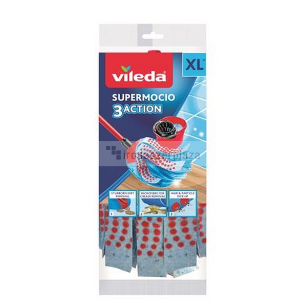 Az egyedülálló felmosó fejjel könnyen ki lehet takarítani a rejtett zugokat is. A Vileda SuperMocio 3Action gyorsfelmosó könnyedén eléri a poros zugokat és sarkokat is.