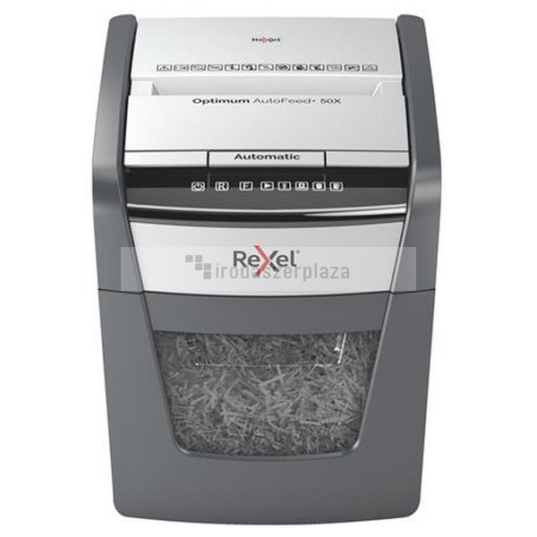Iratmegsemmisítő, konfetti, 50 lap, REXEL, „Optimum AutoFeed+ 50X”