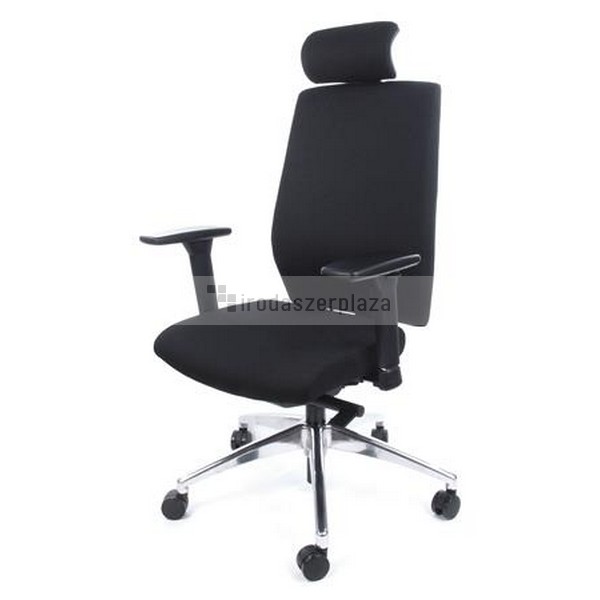 magas háttámlás irodai szék komfortos kialakítással, ergonomikusan formázott ülőlappal és háttámlával gázliftes magasságállítás egy mozdulattal állítható háttámlamagasság csiszolt alumínium lábcsillag állítható magasságú és billenthető nyaktámasszal szeleppel és pumpával állítható deréktámasz több ponton rögzíthető szinkronmechanika állítható ülőlap dőlésszög ülésmélység állítás kárpit: fekete szövet állítható magasságú karfával szállítjuk teherbírás: 135 kg szín: fekete ülőlap szélesség: 47 cm ülőlap mélység: 45 cm ülésmagasság: 44-57 cm háttámla magasság: 69-77 cm teljes magasság: 113-138