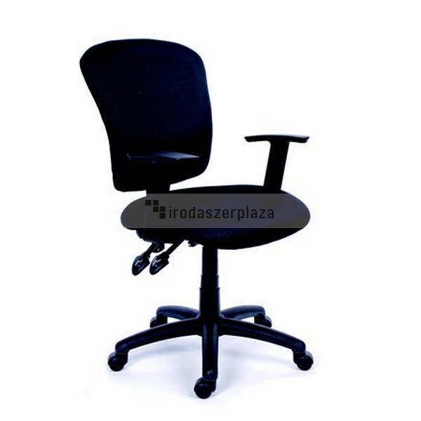 sokoldalúan használható menedzserszék vastag, strapabíró szivacsozással az ülőfelületen és a háttámlán komfortos kialakítással, ergonomikusan formázott háttámlával gázliftes magasságállítás állítható háttámla magasság állítható háttámla dőlésszög állítható ülőlap dőlésszög kárpit: különleges, anyagában mintás szövet szín: fekete állítható magasságú karfával szállítjuk Méretek: teljes magasság: 94-110 cm ülésmagasság: 43-53 cm ülésmélység: 50 cm ülésszélesség: 52 cm teherbírás: 110 kg