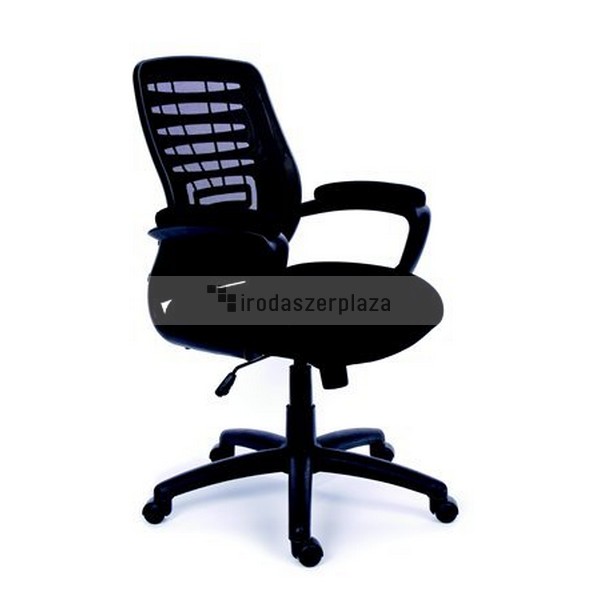 irodai forgószék párnázott ülőfelületel gázliftes magasságállítás rögzíthető hintamechanika rögzített, hálós háttámla párnázott karfával szállítjuk kárpit: ülőfelületen: mesh háttámla: feszített hálós szín: fekete méretek: teljes magasság: 98-108 cm ülésmagasság: 42-55 cm ülésmélység: 52 cm ülésszélesség: 55 cm teherbírás: 110 kg