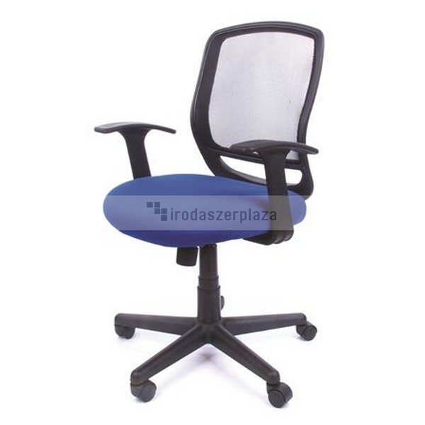 Irodai szék, karfás, kék szövetborítás, feszített hálós háttámla, fekete lábkereszt, MAYAH "Fun"
