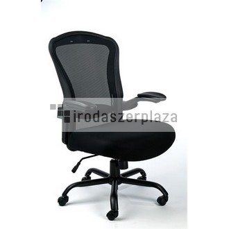 nagy teherbírású irodai szék vastag, ergonomikusan formázott szivacsozással és háttámla kialakítással erősített elemekkel gázliftes magasságállítás hintamechanikával kárpit: ülőfelület: mesh hálós szövet háttámla: feszített hálós szövet állítható karfával szállítjuk teherbírás: 180 kg