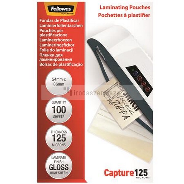 Meleglamináló fólia, 125 mikron, 54×86 mm, fényes, 100 db, FELLOWES