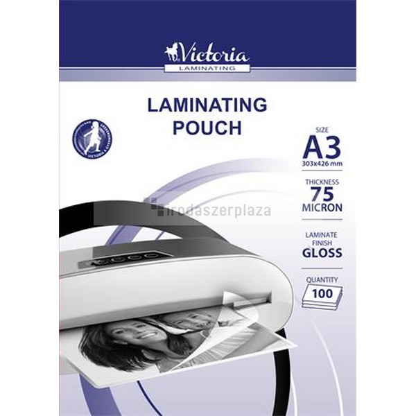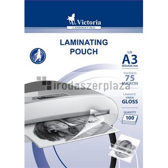 Meleglamináló fólia, 75 mikron, A3, fényes, VICTORIA OFFICE