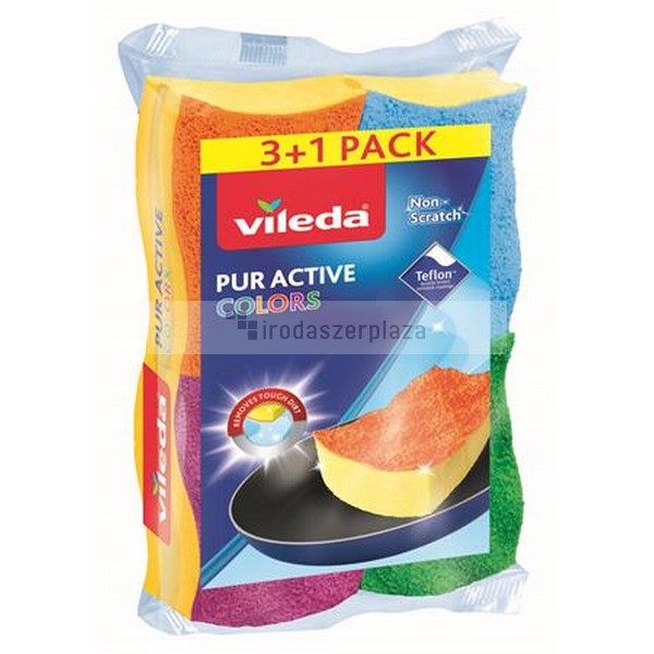 Mosogatószivacs, 3+1 db, VILEDA „Pur Active Colors „
