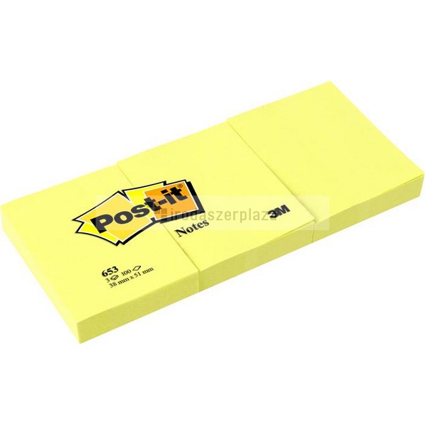 Öntapadó jegyzettömb, 38×51 mm, 3×100 lap, 3M POSTIT, kanári sárga
