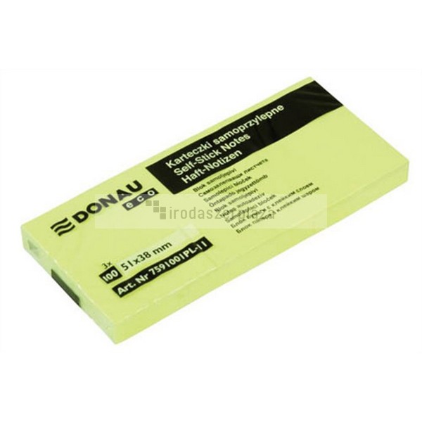Öntapadó jegyzettömb, 38x51mm, 3x100 lap, DONAU "ECO", sárga