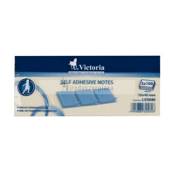 Öntapadó jegyzettömb, 50x40 mm, 100 lap, VICTORIA OFFICE, sárga