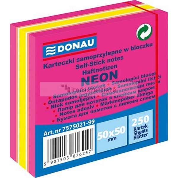 Öntapadó jegyzettömb, 50x50 mm, 250 lap, DONAU, neon rózsaszín