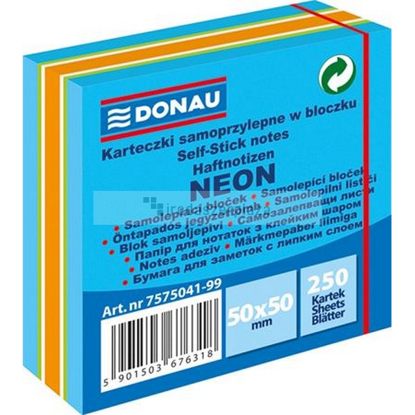 Öntapadó jegyzettömb, 50x50mm, 250 lap, DONAU, neon kék