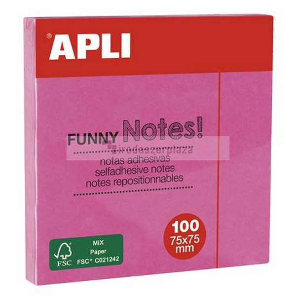 Öntapadó jegyzettömb, 75×75 mm, 100 lap, APLI „Funny”, neon rózsaszín