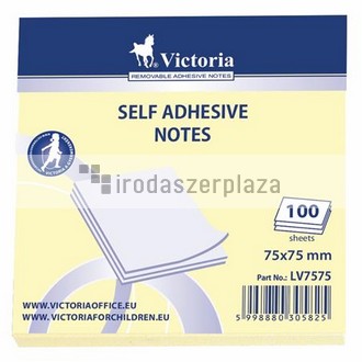 Öntapadó jegyzettömb, 75×75 mm, 100 lap, VICTORIA OFFICE, sárga