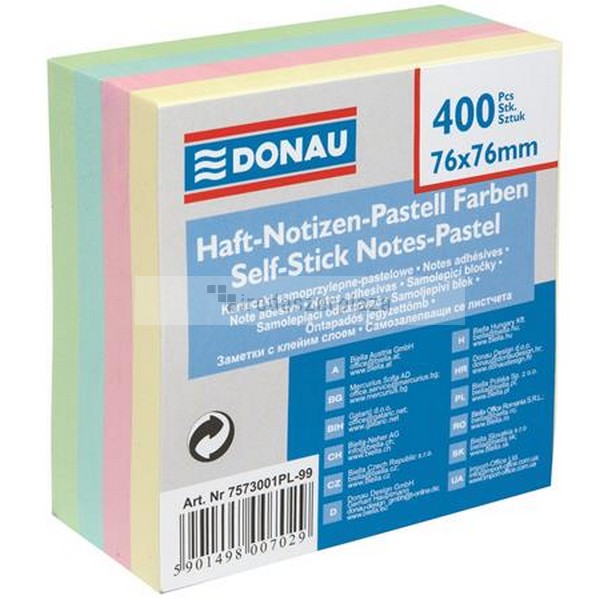 Öntapadó jegyzettömb, 76x76mm, 400 lap, DONAU, pasztell színek