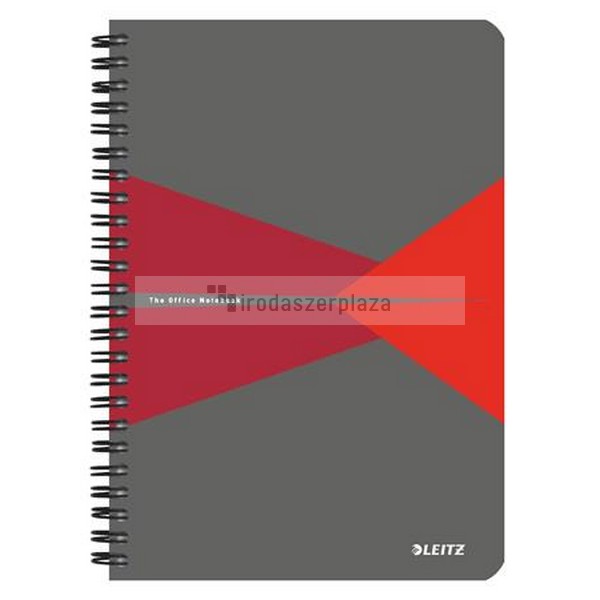 Spirálfüzet, A5, vonalas, 90 lap, PP borító, LEITZ "Office", szürke-piros