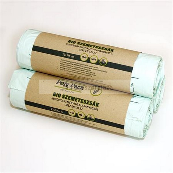 Környezetbarát, komposztálható, biológiai úton lebomló (PLA), megújuló forrásból származó, kukoricakeményítő alapú szemeteszsák.