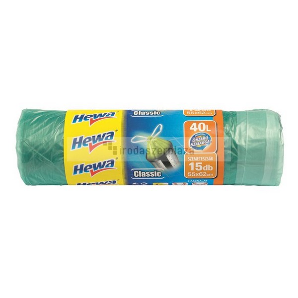 Szemeteszsák, önzáró szalagos, 40 l, 15 db, HEWA