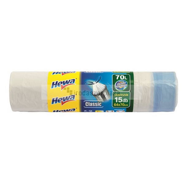 Szemeteszsák, önzáró szalagos, 70 l, 15 db, HEWA
