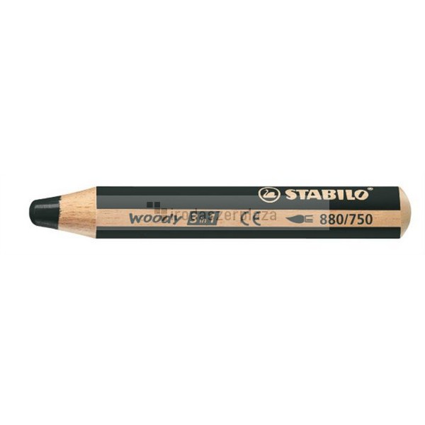 Színes ceruza, kerek, vastag, STABILO "Woody 3 in 1", fekete
