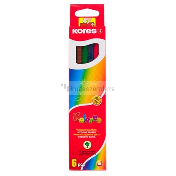 Színes ceruza készlet, háromszögletű, KORES "Triangular", 6 különböző szín