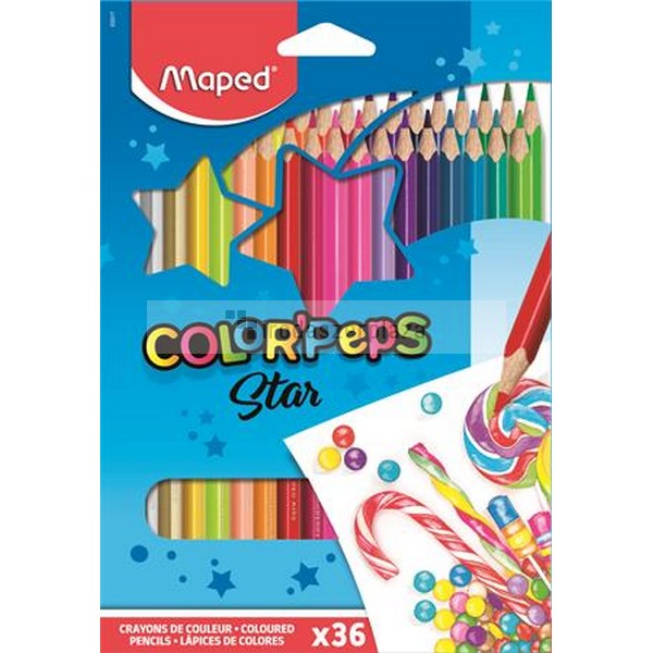 Színes ceruza készlet, háromszögletű, MAPED „Color`Peps”, 36 különböző szín