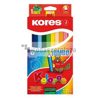 Színes ceruza készlet, háromszögletű, vastag, KORES "Jumbo", 12 különböző szín
