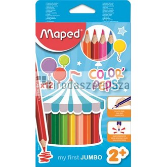 Színes ceruza készlet, háromszögletű, vastag, MAPED „Jumbo”, 12 különböző szín