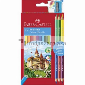 Színes ceruza készlet, hatszögletű, FABER-CASTELL, 12 különböző szín + 3 db bicolor ceruza