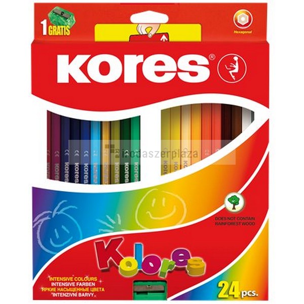 Színes ceruza készlet, hatszögletű, KORES „Hexagonal”, 24 különböző szín