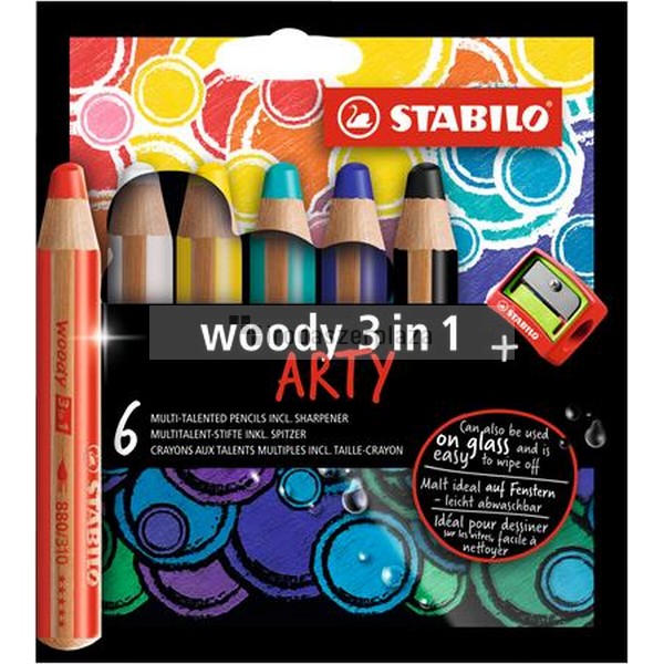 Színes ceruza készlet, kerek, vastag, STABILO "Woody ARTY 3 in 1", 6 különböző szín