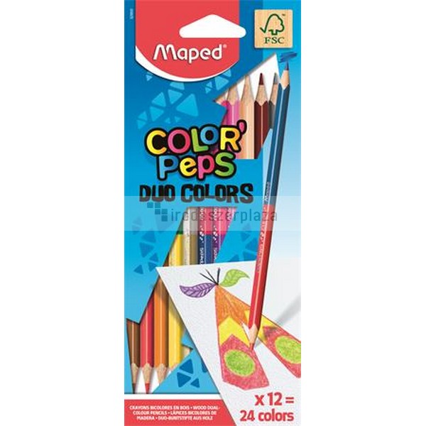 Színes ceruza készlet, kétvégű, háromszögletű, MAPED „Color`Peps Duo”, 24 különböző szín
