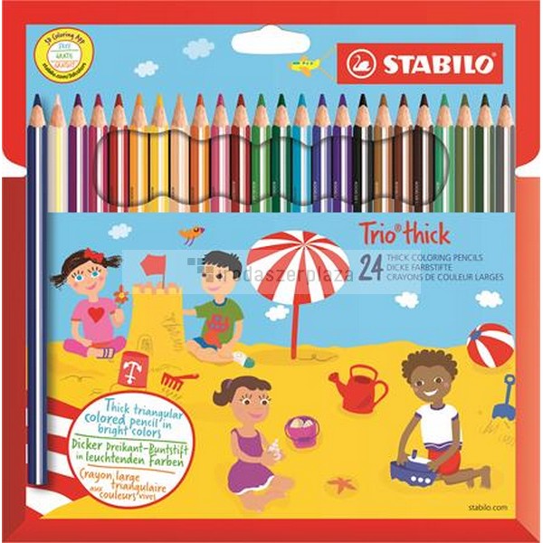 Színes ceruza készlet, vastag, háromszögletű, hegyezővel, STABILO „Trio thick”, 24 különböző szín